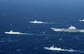 资料图:执行跨海区训练试验任务的中国海军航母编队在南海某海域组织训练
