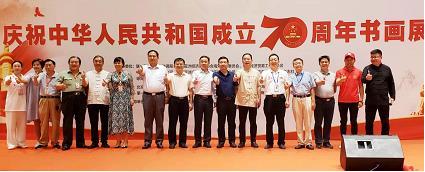 琼海市旅文局局长吴恩泽在致辞中说 感谢各位领导、嘉宾和书画家们的光临,感谢组委会工作人员的辛勤付出, 你们牺牲节假日来博鳌为新中国成立70周年献礼,为琼海市民和博鳌游客献上一场文化大餐,已经成为国庆期间博鳌亚洲会议中心一张文化名片和一道靓丽的风景线。在此我代表琼海市民和博鳌游客再次向各位来宾表示衷心的感谢!琼海市文联主席杨奋宣布书画展开幕。