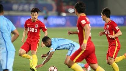 资料图:长春亚泰(红)2017赛季在中超联赛比赛中