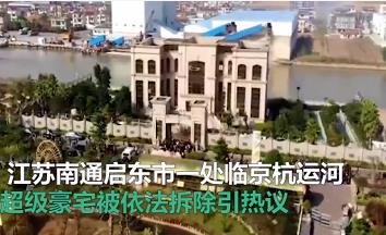 中国都市信息报讯:(记者 张敏 南通报道)近日,江苏南通启东市一处临京杭运河违建超级豪宅被依法拆除引热议,10月31日晚,豪宅被爆破拆除,整栋楼轰然倒下。当地人在现场围观拍照。豪房主称,其属违建,支持政府工作,并非强拆。房主曾不舍与家人抱头痛哭。